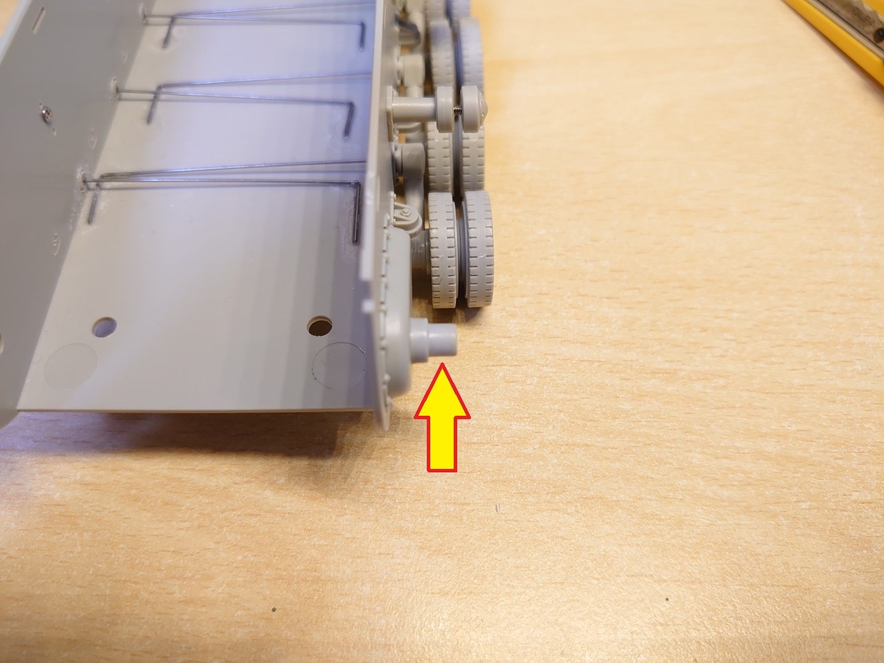 その前に、車体側の軸部分のパーツがドライブホイールと干渉してしまいそうなので対処します。