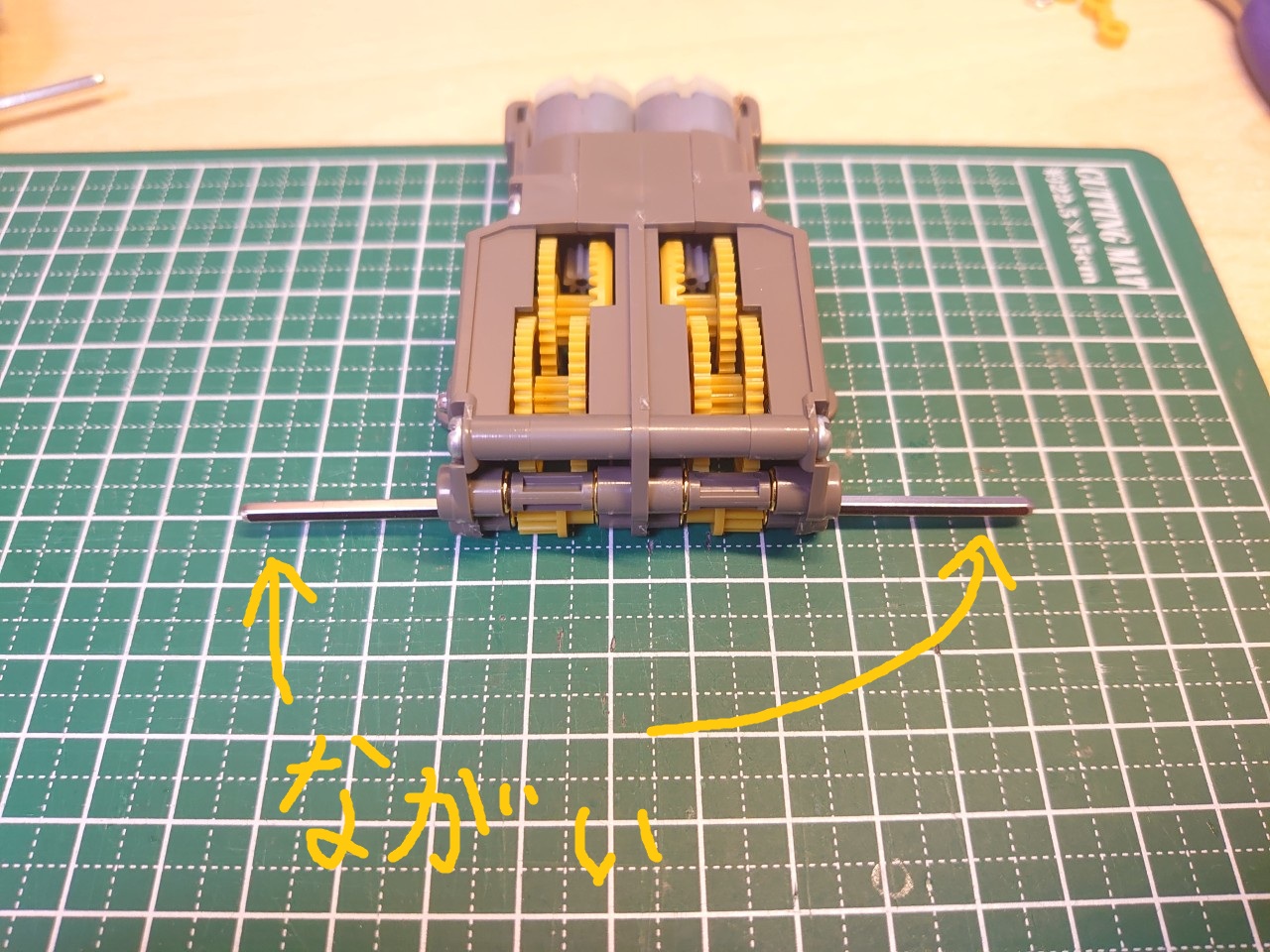 最終的にはこのような形状になりました!あとは接着剤が完全に固まってからギヤボックスに取りつけて動作検証するだけです!