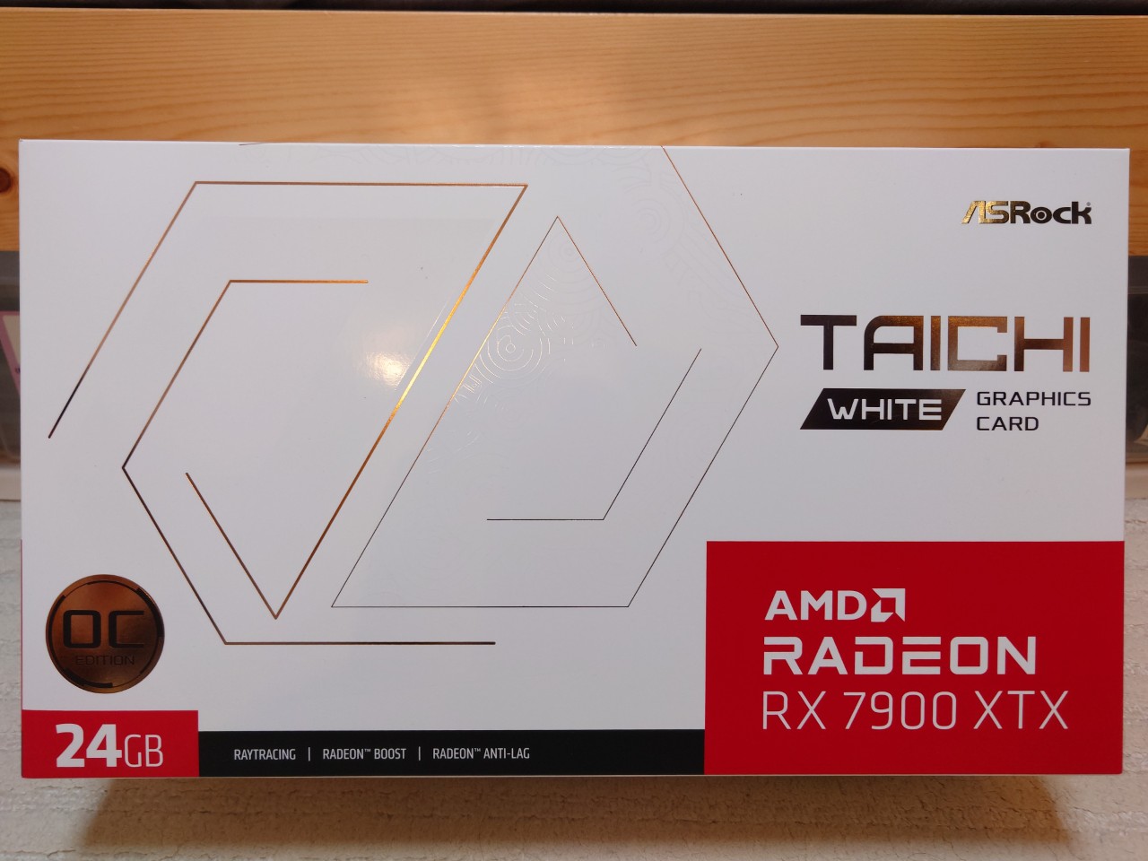 札幌のツクモにふらっと行った所、ASRockの「RX7900XTX Taichi」が99,982円で売っていました。こちらも一世代前という事になってしまいますが、未だにレンダリング性能が強い点やVRAM容量が大きい点が気になっていたので、これを買う事にしました。