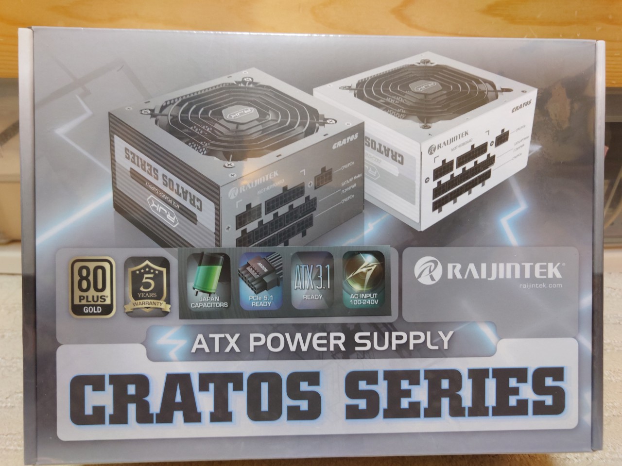 電源装置は「RAIJINTEK CRATOS 1200 WHITE」というのを買いました。名前の通り1200Wで容量にはかなり余裕があります。あとPCケースに合わせて白色にしてみました。