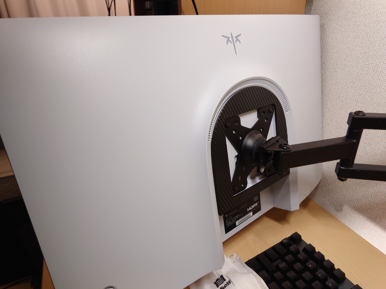 裏側はこんな感じです。色合いがPS5のような白と黒の二色です。落ち着いてスッキリしたデザインです。またメーカーのロゴの主張もうるさくなくて良いです。しかし、とても残念な事に使い始めて3日後に電源が入らなくなってしまいました…異音や異臭は無く、急に電源ボタンを押してもうんともすんとも言わなくなってしまいました。運悪くハズレ個体を引いてしまったのかも知れません。。仕方ないので物は返品し代金はそのまま返ってきました。ただ、こんな目にあっておきながら個人的にはそんなに嫌いじゃないモニターでした。デザインも良いですし、画質もとても良かったです。