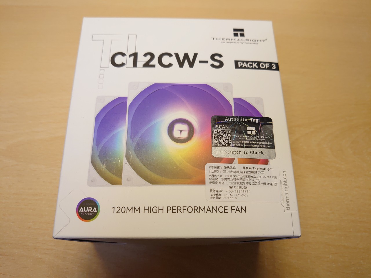 Thermalright TL-C12CW-S CPUファン 最大1500RPM(3個)」です!3個セットなので下部2か所と背面1か所に使おうと思います。こちらもARGB対応なのでLEDで光らせる事ができます。
