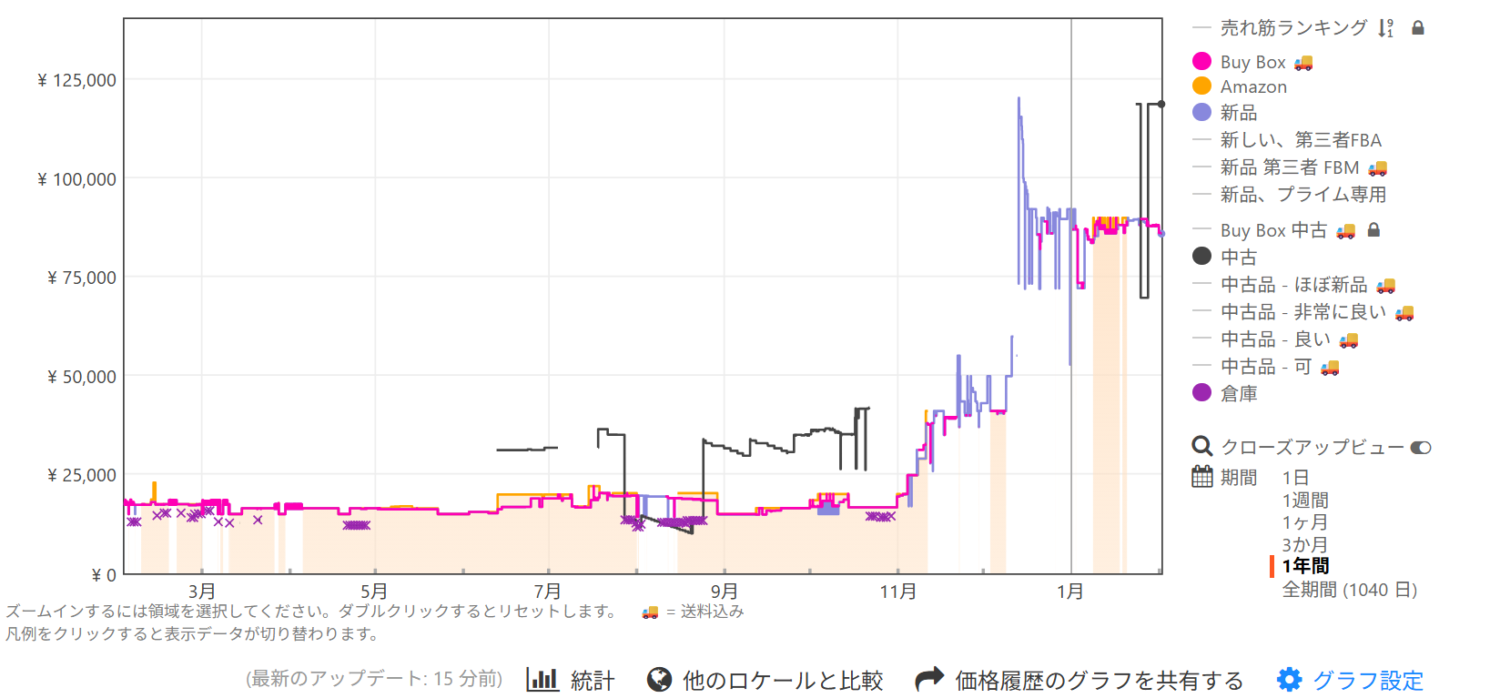 ちなみに今回私が買ったメモリは、購入後の2025年11月から高騰し始めて、14,980円から85,980円に跳ね上がりました。。恐ろしい。。