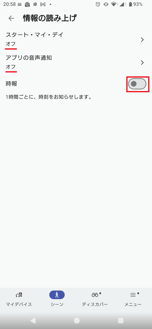 あとは「スタート・マイ・デイ」と「アプリの音声通知」、「時報」をオフにするだけです。これで音はならなくなりました。良かった良かった。