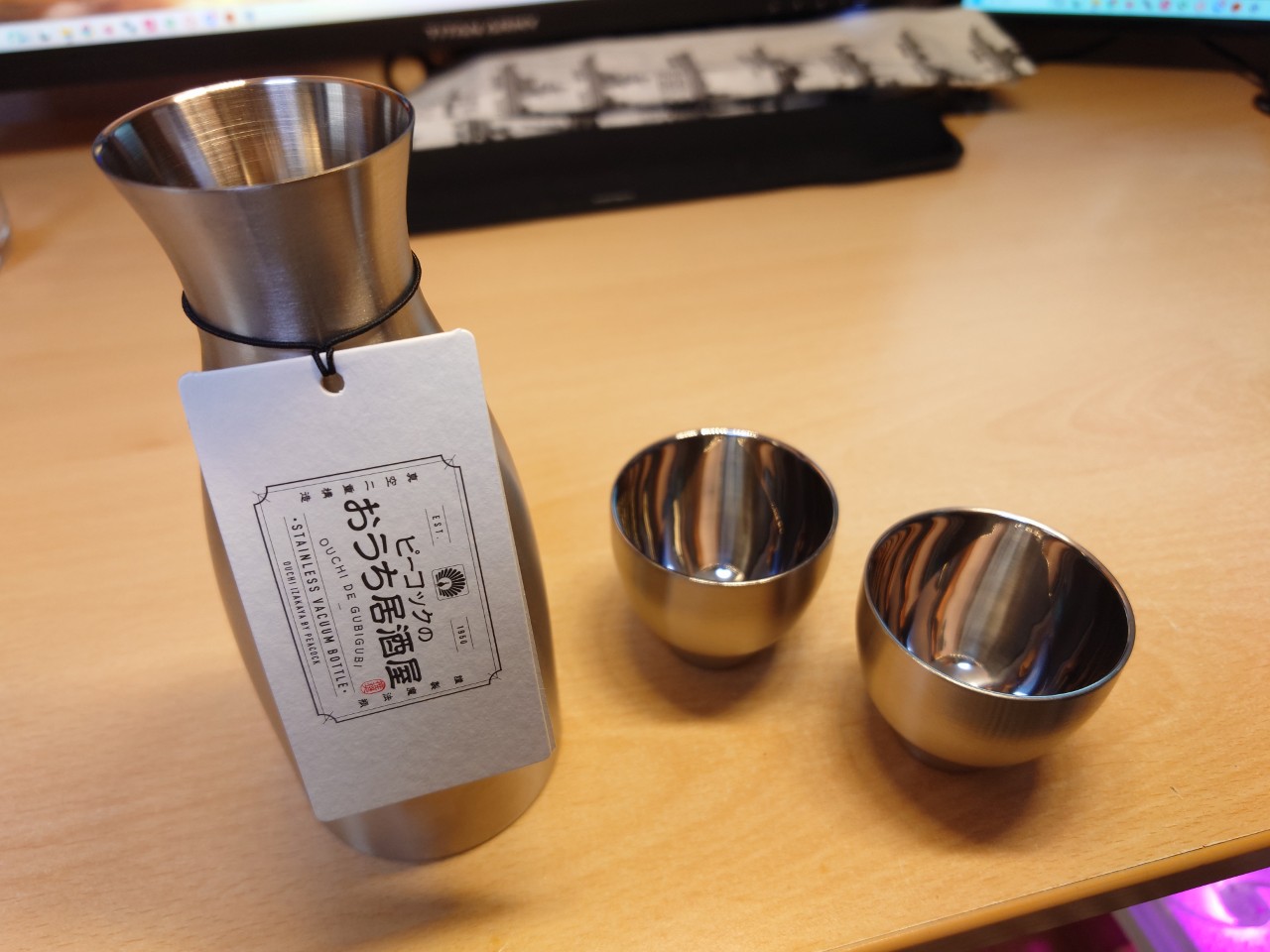 ピーコック ステンレス製 とっくり おちょこセット」です!それこそゴースト・オブ・ヨウテイをプレイしている時にやたら酒が飲みたくなりました(残念ながら私は日本酒を飲む事で気力や体力を回復する事はできませんが酒は大好きです)。部屋に徳利が無かったので見た目が格好良いという理由だけでこれを選びました。