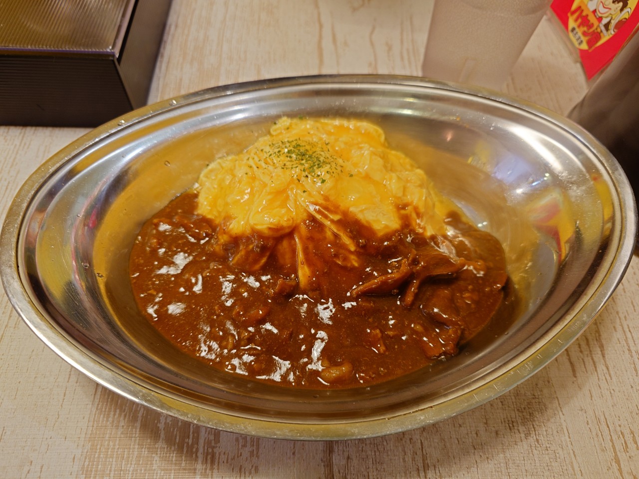 「オムハヤシ」1,000円です!早速いただいたのですが、ハヤシライスソースの濃厚さに驚きました。自分はハヤシライスについて詳しい訳では無いのですが、ハヤシライスってもう少しあっさりしてソースのとろみも控えめな印象があったのですが、デミグラスソースと言うか、濃厚なカレーライスのような感じでした。