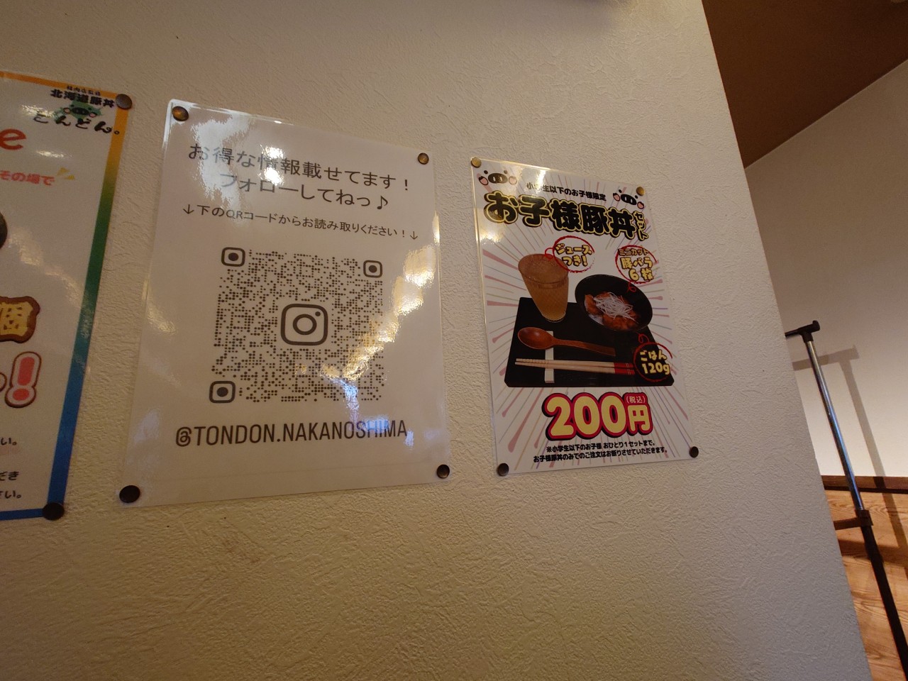 あとは、小学生以下のお子様限定で「お子様豚丼セット」があり、身にカット豚バラの豚丼とジュース付きで200円のメニュー等も用意されているようです。